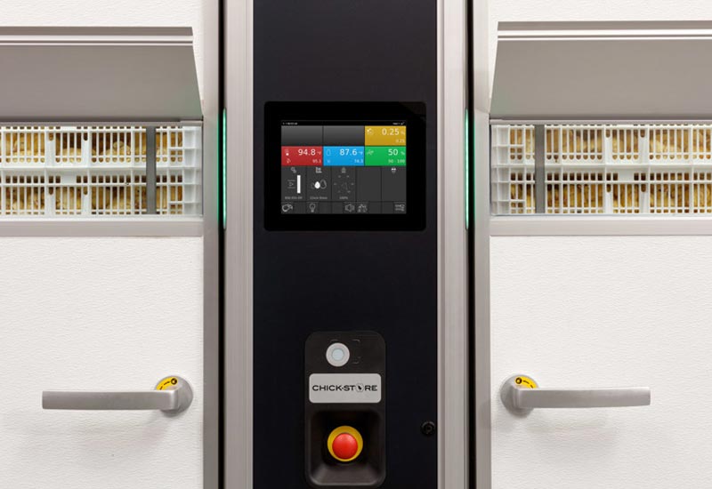 Равномерно распределяется воздух по рядам тележек для цыплят и ящиков для цыплят внутри машины. Избыточная влажность и CO 2 удаляются через воздуховыпускные отверстия. Эти идеальные условия окружающей среды обеспечивают равномерный поток воздуха для партий цыплят любого размера, что гарантирует превосходное развитие .